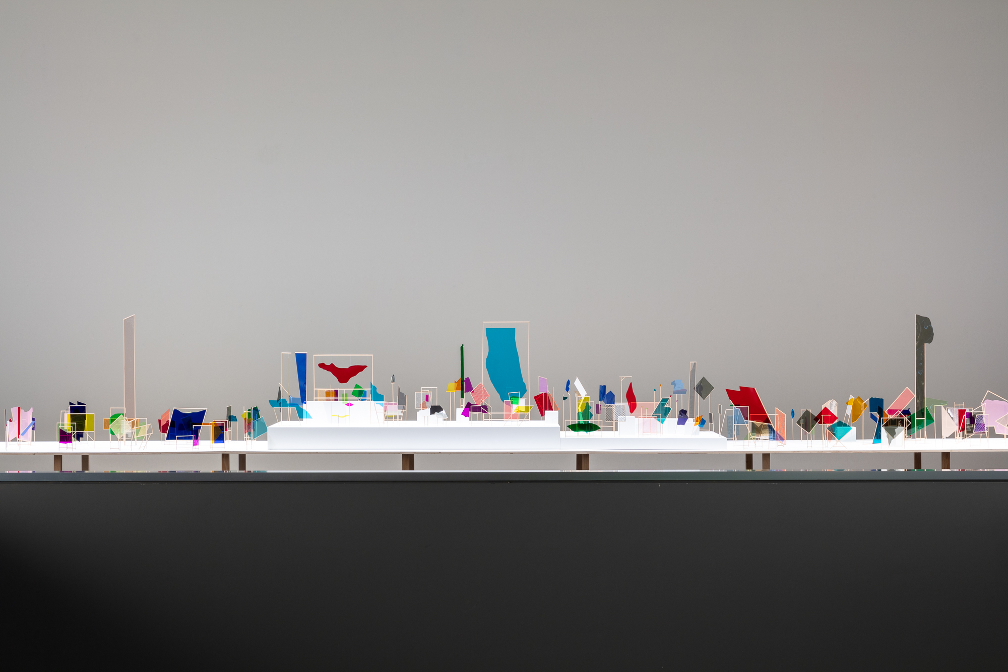 Photo credit: Richard Ibghy & Marilou Lemmens, Movement of Spot and Futures Market Prices for Agricultural Commodities (2005-2012) from the series Futures, 2019. Wood and ink; 72 x 24 x 23 cm. Photo: H&S.